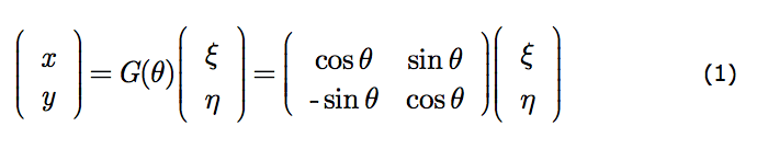 This is a compact rendering of x=x(ξ,η) and y=y(ξ,η), the equations represented by r = G(θ)ρ.