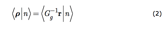 An observer can reverse his scrutiny alteration thus retrieving ρ from r. Put symbolically ρ = G-1(θ)r. So a state of the system may equally well be portrayed in the transformed coordinates, r by just carrying out the coordinate transformation; substituting G-1(θ)r for ρ. Reverting to the generic enumerator, g, we may write symbolically